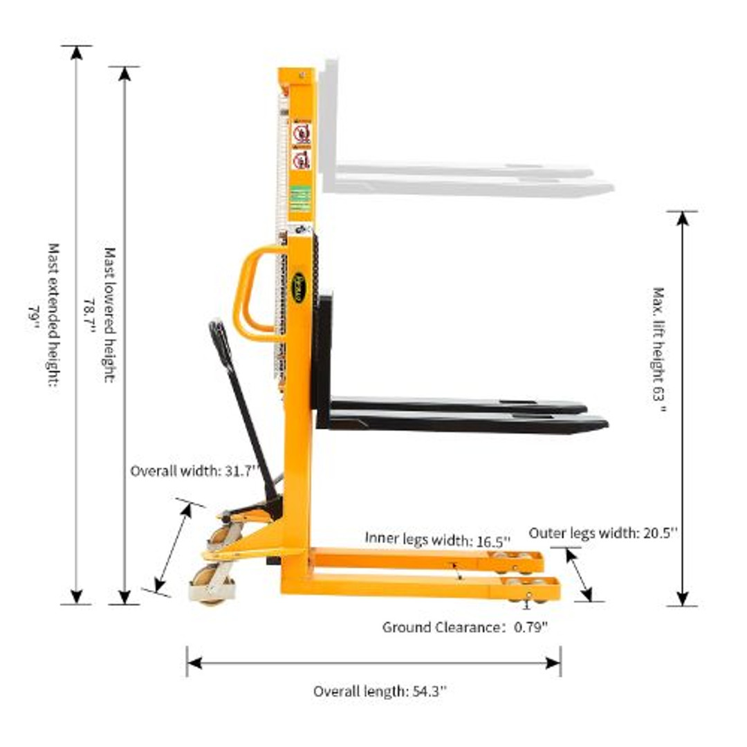 Apollolift A-3002 Manual Straddle Stacker 1100lbs Cap. 63″ Lift Height