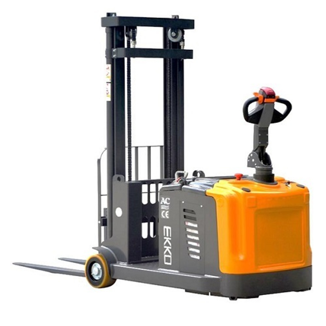 EKKO EK14-138 Counterbalance Electric Fork Stacker 3300 Capacity features electric-powered drive and lift capable of lifting loads at a height of 138” high. It has a compact design with the combination of the versatility of forklift and a walkie stacker making ideal for all sorts of material handling applications such as loading and unloading trucks, loading docks, stock rooms, manufacturing floors and warehousing.